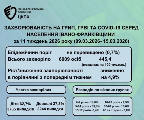 Епідситуація: рівень захворюваності на сезонні вірусні інфекції знизився на 4,9%