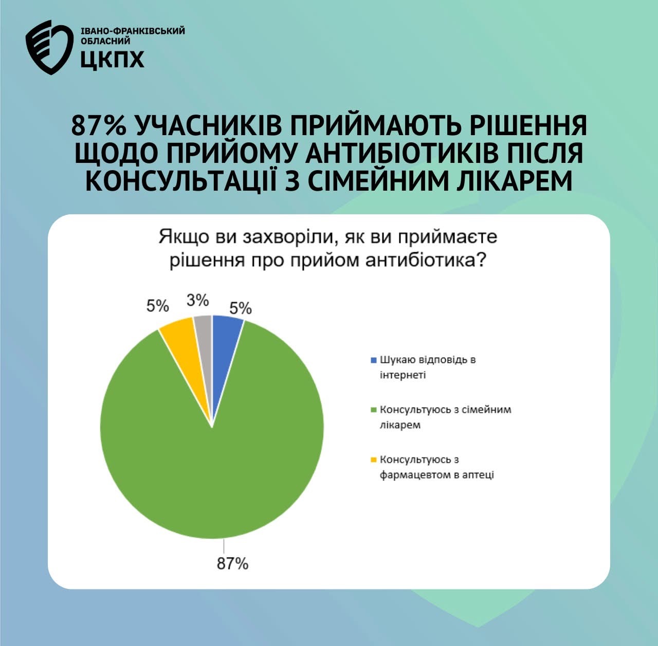 Відділ антимікробної резистентності та інфекційного контролю ДУ «Івано-Франківський ОЦКПХ МОЗ» провів анонімне анкетування, у якому взяли участь понад 800 респондентів.