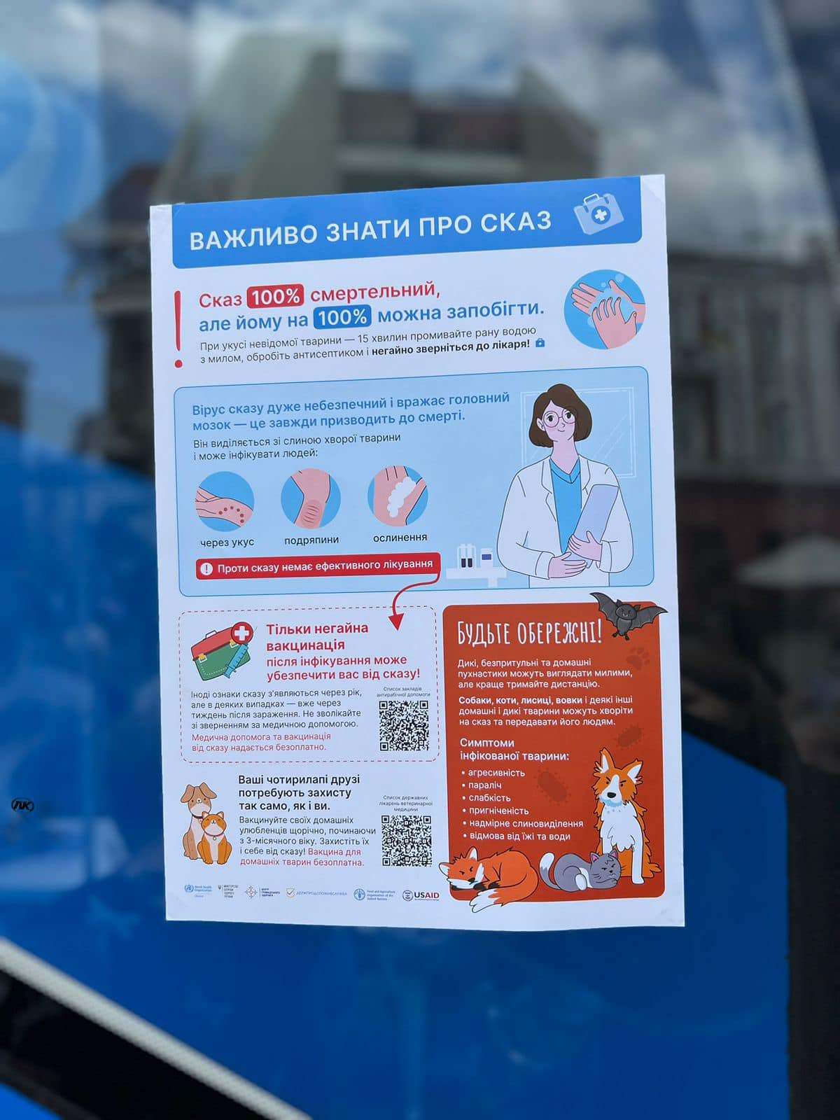 28 вересня відзначається всесвітній День боротьби зі сказом. Спеціалісти центру контролю та профілактики хвороб розповіли мешканцям Івано-Франківська про особливості інфікування та перебігу захворювання на сказ, а також надали інформаційні матеріали щодо профілактики цього смертельно небезпечного захворювання.