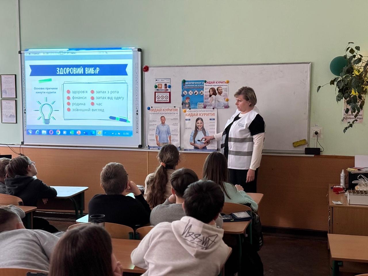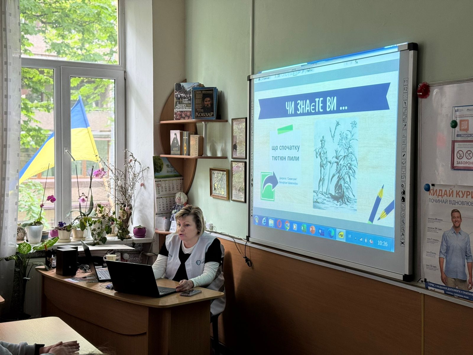В рамках проведення інформаційно-просвітницької кампанії «Знай про ризики. Правда про куріння» з використанням матеріалів, наданих Центром громадського здоров’я МОЗ України, лікар із загальної гігієни ДУ «Івано-Франківський ОЦКПХ МОЗ» Наталія РЕЗНІЧЕК провела лекцію для учнів 6-х класів.