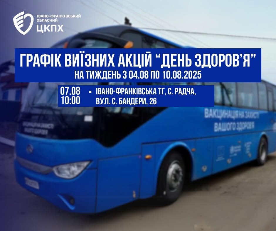 Графік виїзних акцій «День здоров’я» на тиждень з 04.08 по 10.08.2025 року