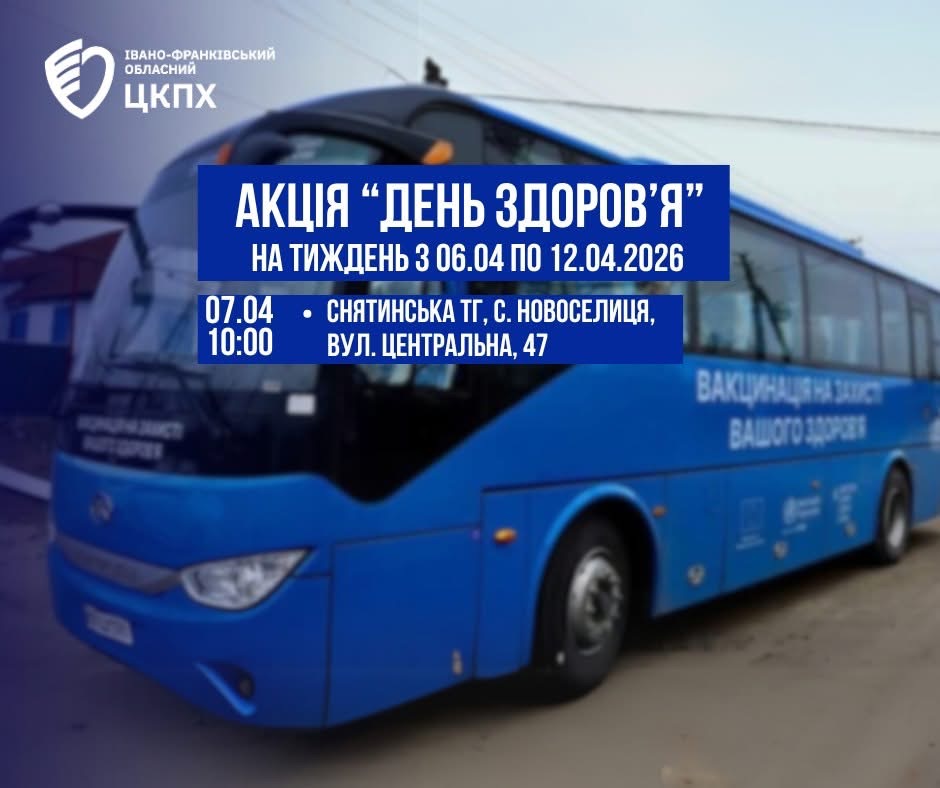 Графік виїзних акцій «День здоров’я» на тиждень з 06.04. по 12.04.2026 року