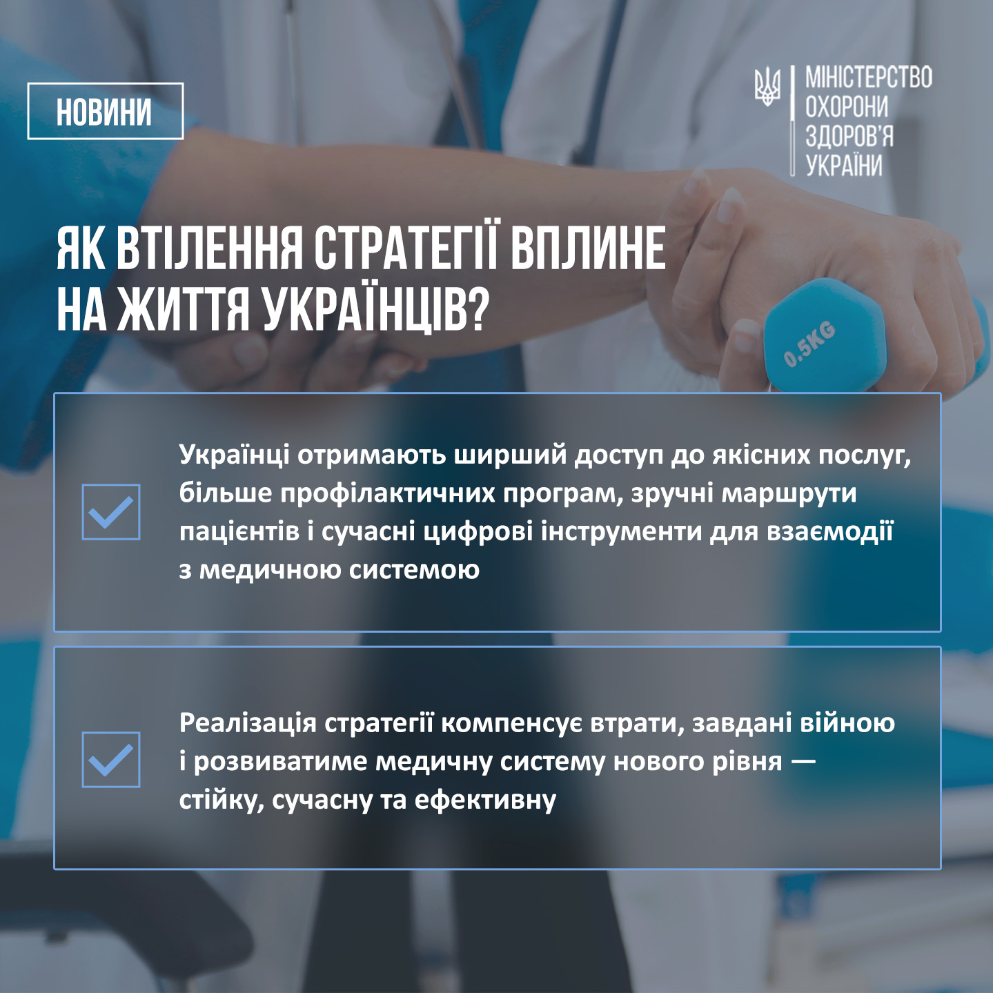 “Маємо чіткий покроковий план дій, покликаний розвивати спроможність нашої системи охорони здоров’я та поширювати кращі практики медичної реформи на лікувальні заклади по всій країні. Маємо два ключові вектори: забезпечити стійкість системи в умовах війни та водночас зосередитись на відновленні, поєднавши його з процесами реформування та підвищенням ефективності функціонування відповідно до принципу “краще, ніж було”. У результаті українці отримають ширший доступ до якісних послуг, більше профілактичних програм, зручні маршрути пацієнтів і сучасні цифрові інструменти для взаємодії з медичною системою.”