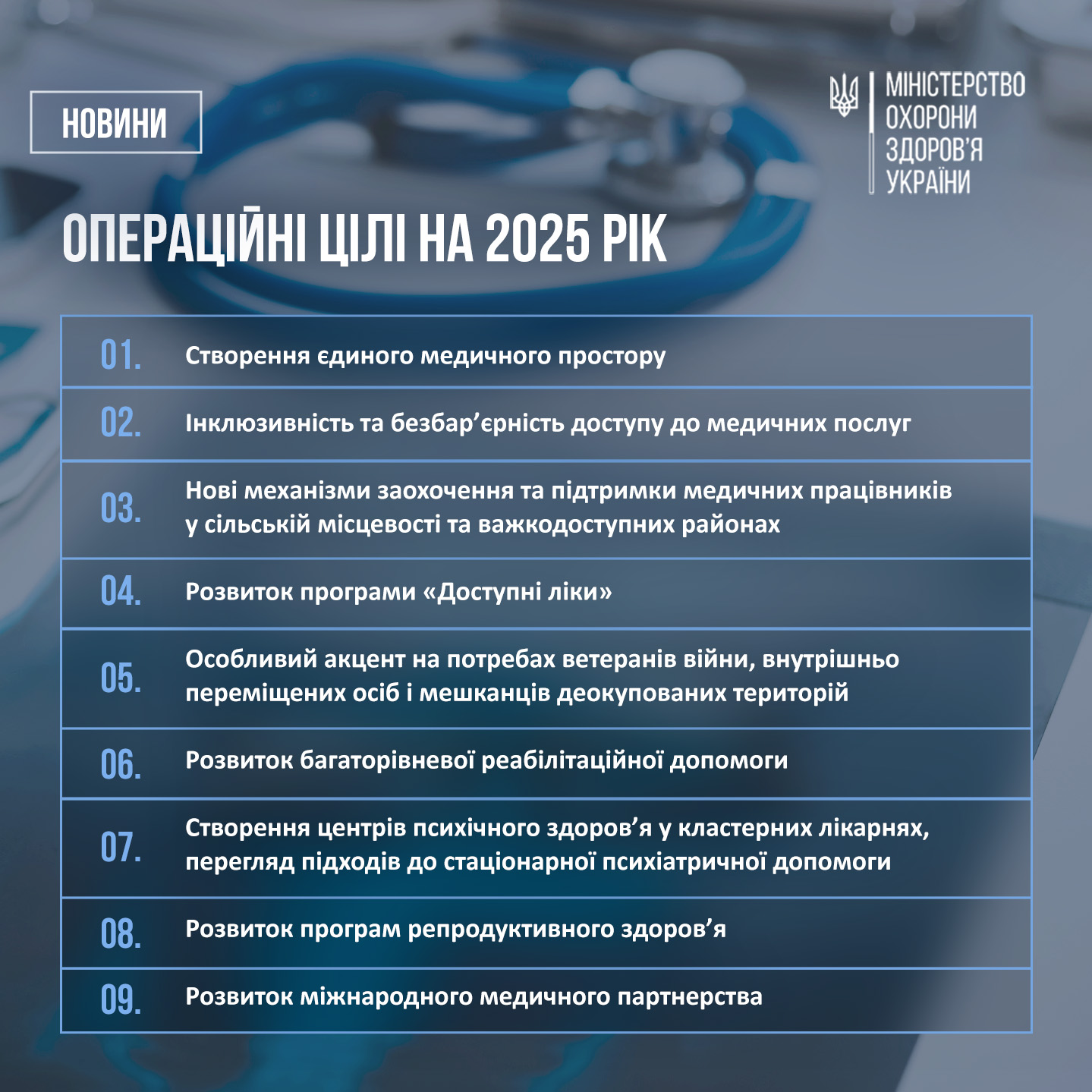 Операційний план на 2025 рік також передбачає особливий акцент на потребах ветеранів війни, внутрішньо переміщених осіб і мешканців деокупованих територій, які отримуватимуть медичну допомогу, враховуючи їхні специфічні потреби.