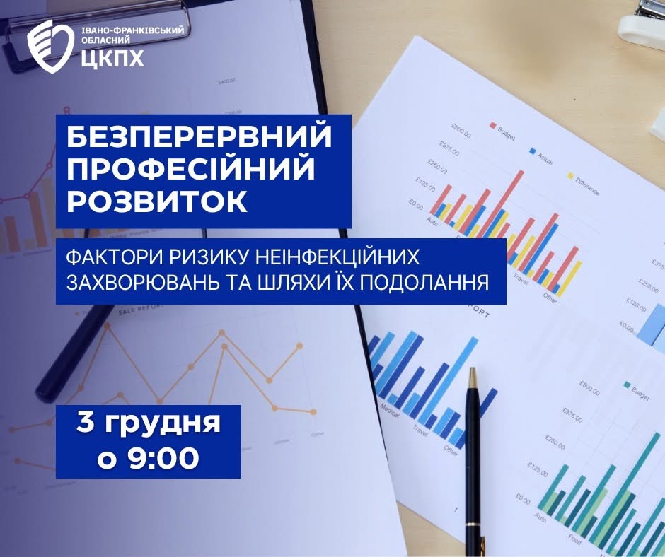 3 грудня 2025 року о 9:00 відбудеться онлайн-семінар на тему: «Фактори ризику неінфекційних захворювань та шляхи їх подолання»