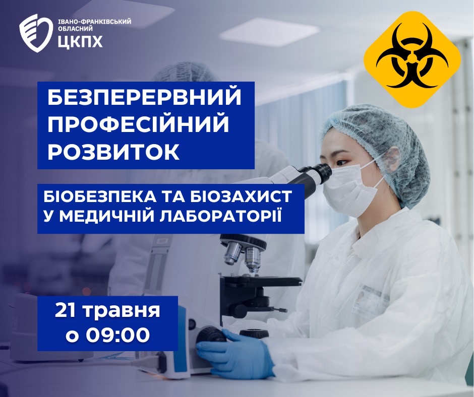 21 травня 2025 року о 9:00 розпочнеться онлайн-семінар на тему: «Біобезпека та біозахист у медичній лабораторії».