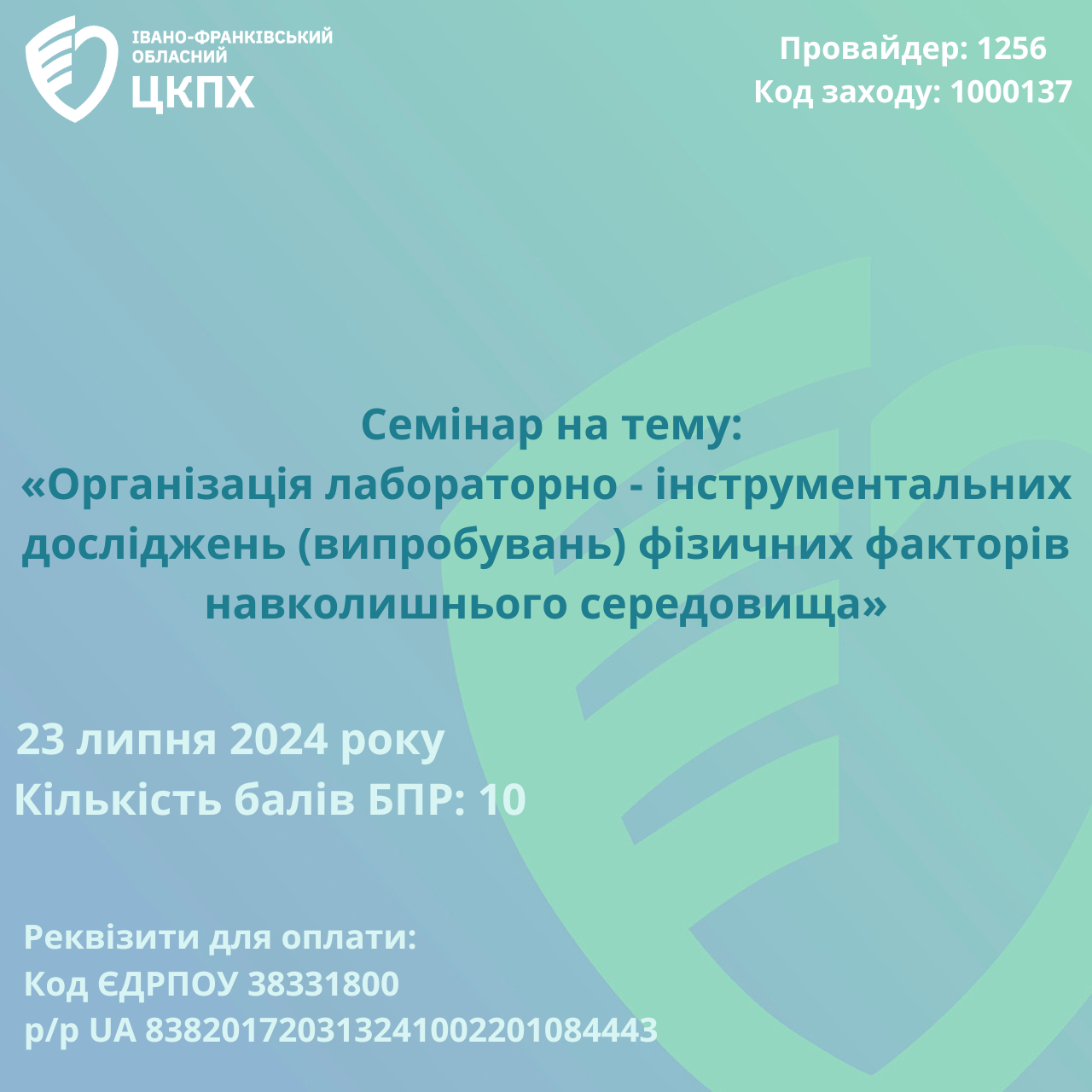 23 липня 2024 року відбудеться онлайн-семінар на тему: «Організація лабораторно- інструментальних досліджень (випробувань) фізичних факторів навколишнього середовища»